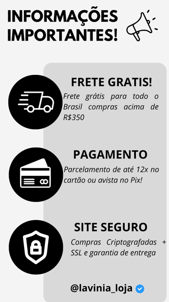 Você está adquirindo um produto exclusivo Lavínia, vendido somente através do nosso site e do instagran @lavinia_loja.